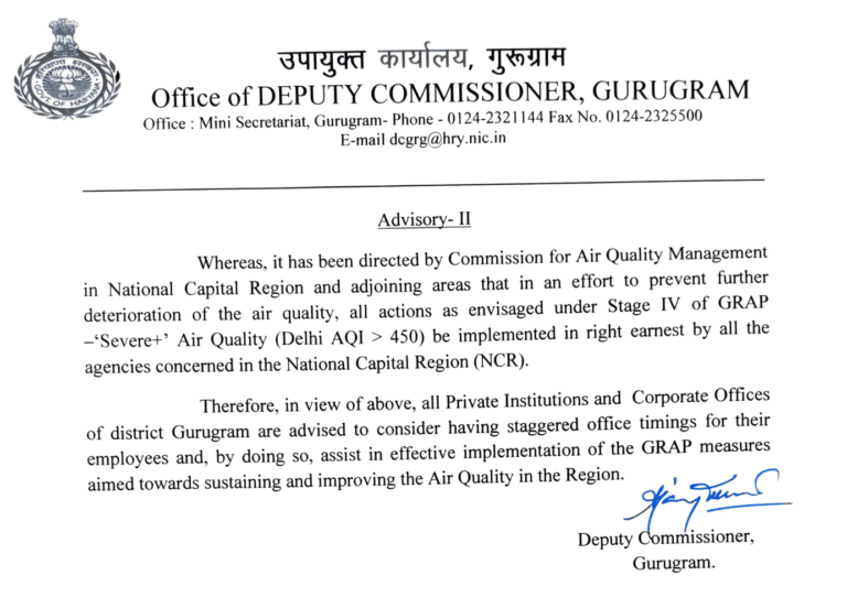 Accordingly, private institutions and corporate offices in Gurugram are advised to adopt staggered office timings for employees, aiding the effective execution of air quality improvement efforts.