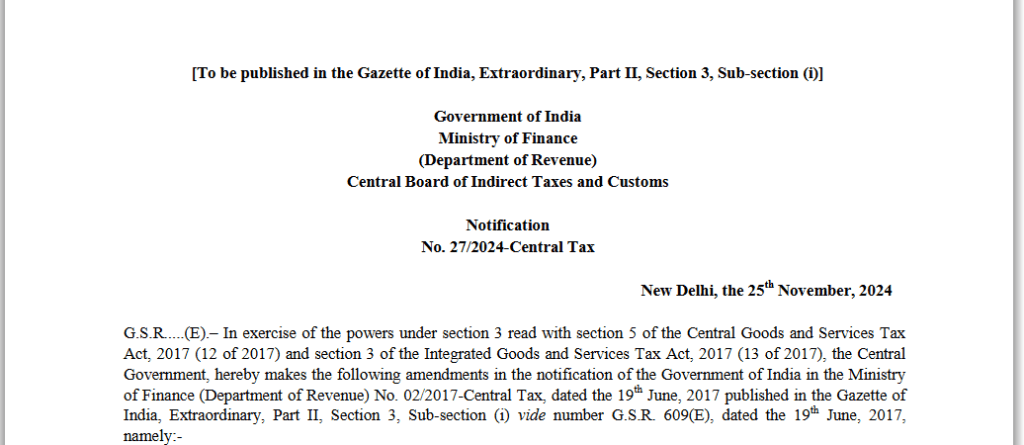 Notification No.: 27/2024-Central Tax