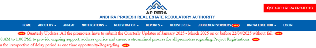 All promoters registered under AP RERA are required to submit the Quarterly Updates for the period January 2025 to March 2025 on or before April 22, 2025 without fail. These updates are critical for ensuring ongoing compliance with Section 11(1)(b) of the RERA Act, which mandates that project details be updated regularly to maintain transparency and keep all stakeholders informed.