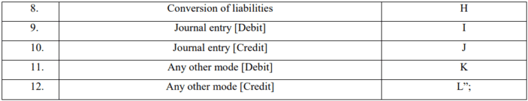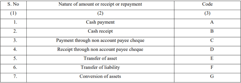 “Note 1. – The code for the nature of amount/ receipt/ repayment is as below –